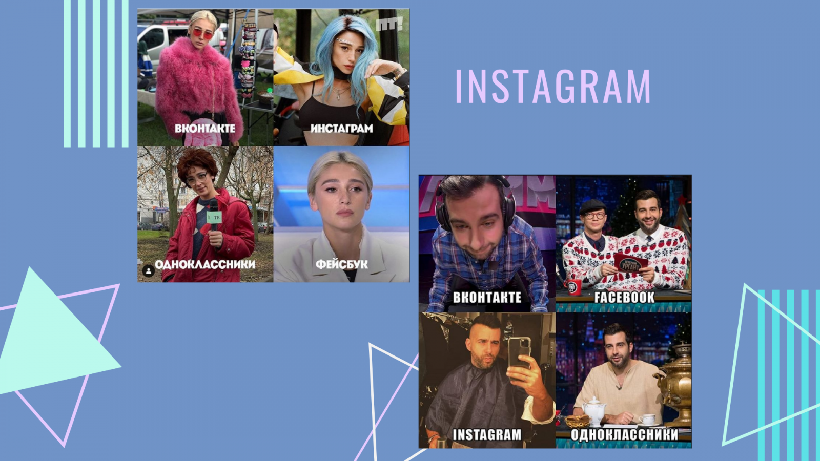 В сети приобрел необычную популярность флешмоб, где люди делятся своими фотографиями в различных социальных сетях. На одной картинке совмещаются кадры из нескольких соцсетей, идея в том, чтобы показать какие разные портреты самих себя мы создаем, отталкиваясь от стереотипов различных Интернет-порталов.